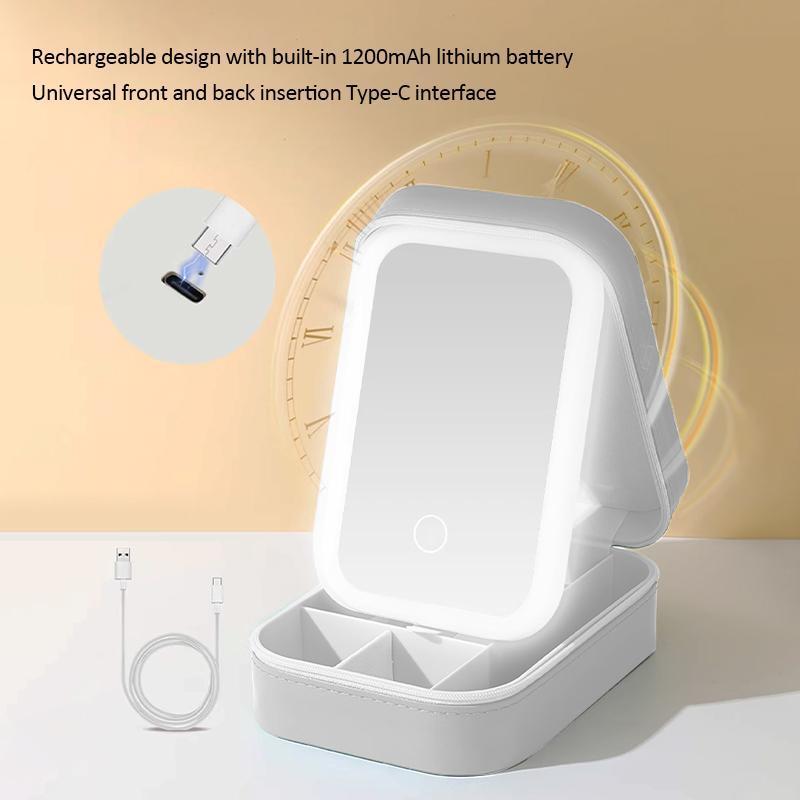 GlamLuxe LED Brightening Organizer Box with Mirror Trichromatic Light